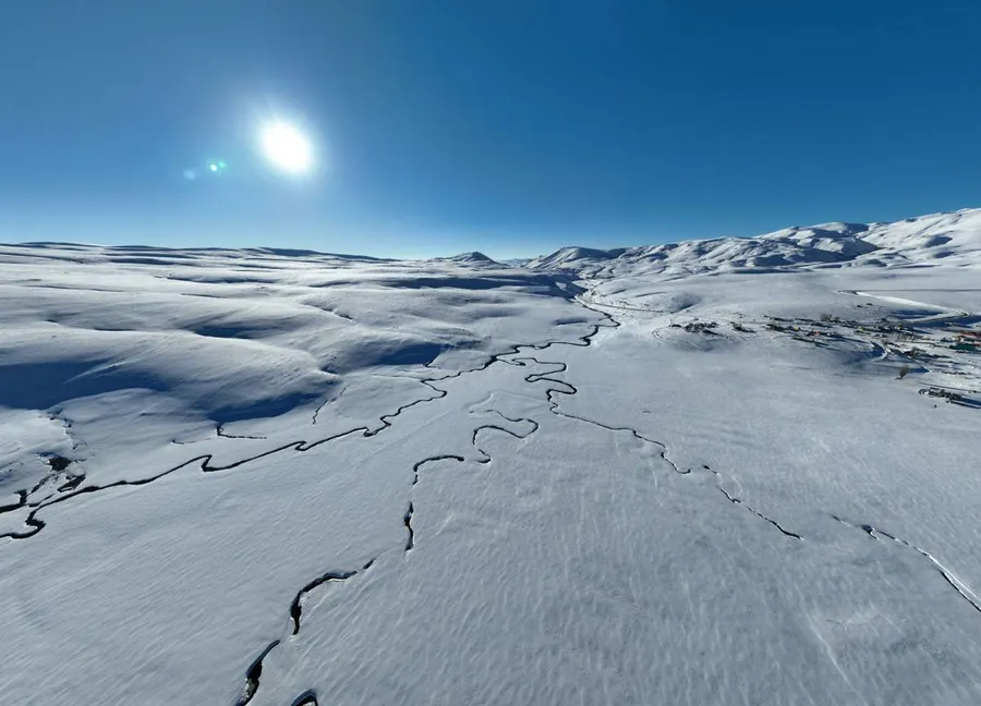 Kış mevsiminin etkisini yoğun şekilde hissettirdiği Taşlıçay’da, doğa adeta görsel bir şölene sahne oldu. Karlar altında kıvrıla kıvrıla uzanan menderesler, havadan çekilen görüntülerle izleyenleri kendine hayran bıraktı.