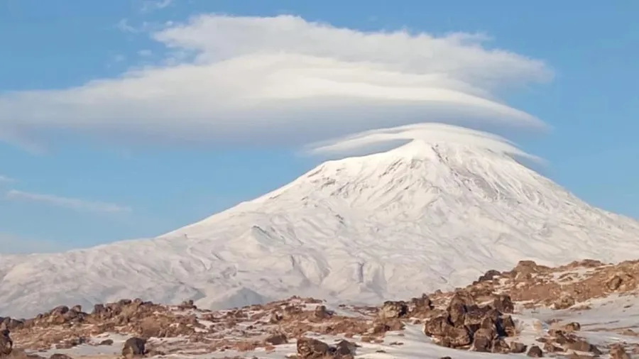 İran, Nahçıvan ve Ermenistan sınır hattından da rahatlıkla görülebilen Ağrı Dağı, bu nadir bulut oluşumuyla bir kez daha doğanın ne kadar cömert olabildiğini gözler önüne serdi. Dairesel yapısıyla zirveyi adeta bir örtü gibi saran mercek bulutu, dağın heybetli siluetini daha da belirgin hale getirdi.