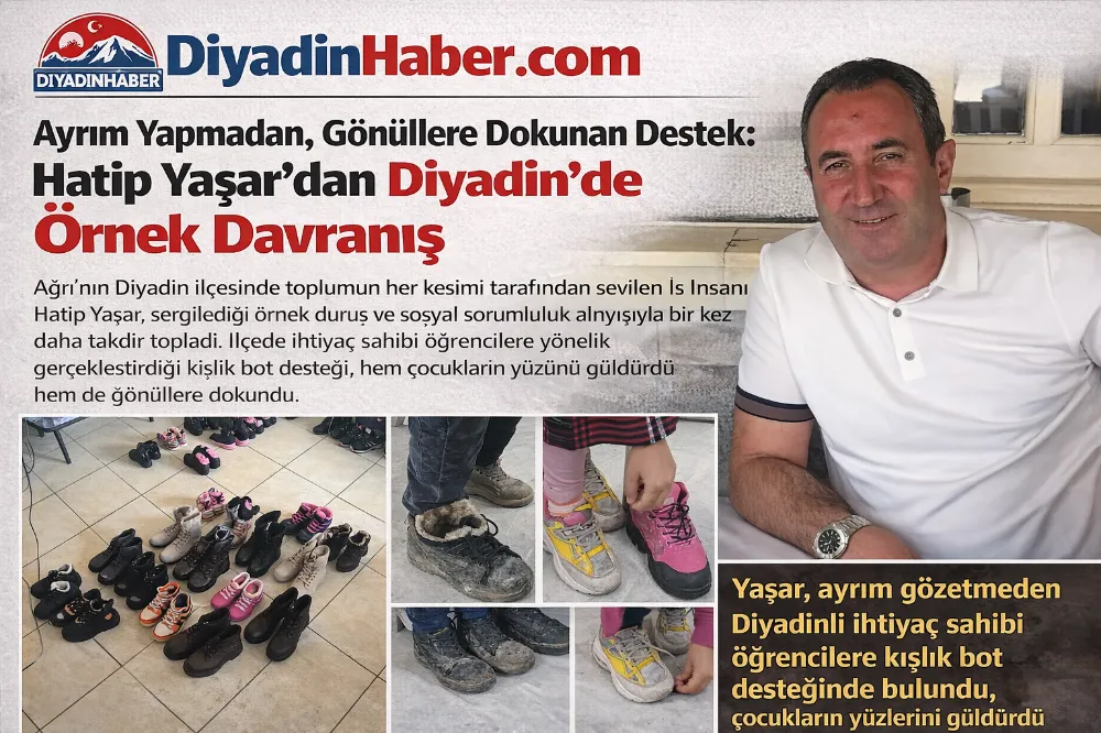 Kış mevsiminin sert ve uzun geçtiği Diyadin’de özellikle kırsal mahallelerde eğitim gören öğrenciler için soğuk hava şartları ciddi zorluklar oluşturuyor. Karla kaplı yollar, dondurucu soğuk ve artan yaşam maliyetleri, aileleri zaman zaman zor durumda bırakabiliyor. Bu tablo karşısında duyarsız kalmayan Hatip Yaşar, öğrencilere ulaştırdığı kışlık bot desteğiyle hem fiziksel hem de moral anlamında önemli bir katkı sundu.