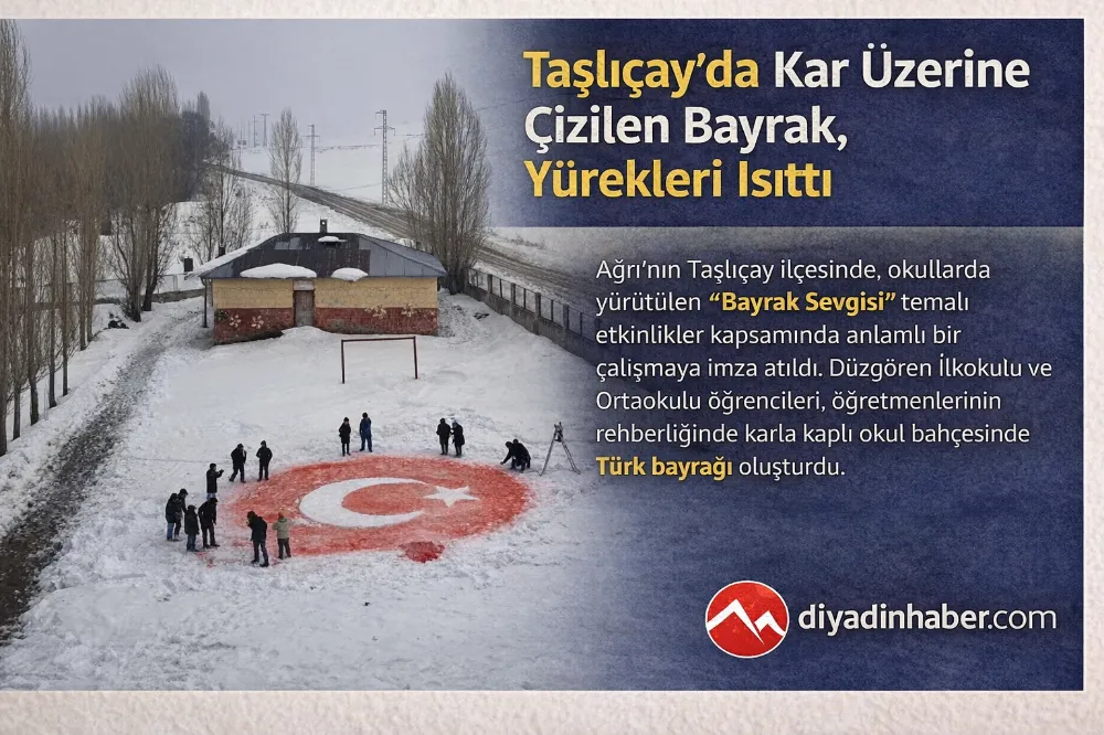 Taşlıçay’da kar üzerinde oluşturulan Türk bayrağı, hem öğrenciler hem de öğretmenler için unutulmaz bir anı olarak hafızalarda yer aldı.