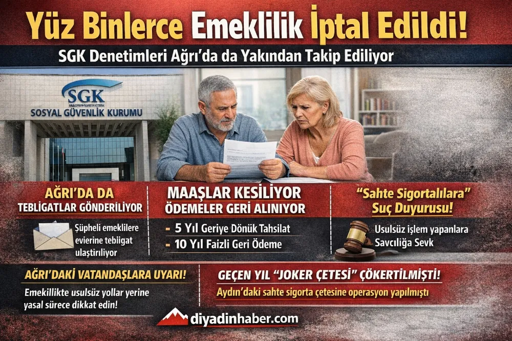 Ağrı merkez başta olmak üzere Diyadin, Doğubayazıt, Patnos ve diğer ilçelerde de benzer incelemelerin sürdüğü belirtilirken, vatandaşların mağduriyet yaşamamaları adına geçmiş sigortalılık süreçlerini dikkatle gözden geçirmeleri gerektiği vurgulanıyor.Maaşlar Kesiliyor, Ödemeler Geri Alınıyor