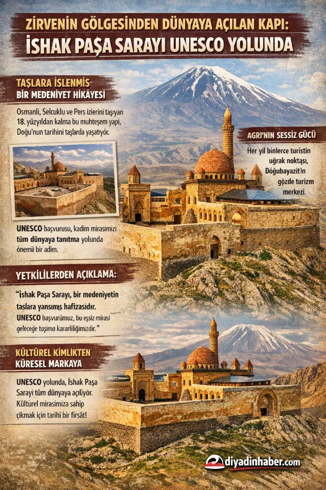 Zirvelerin gölgesinde yüzyıllardır dimdik ayakta duran İshak Paşa Sarayı şimdi yeni bir eşiğin arifesinde. Taş duvarları, bu kez adını dünya mirası listesine yazdırmak için sessiz ama güçlü bir bekleyişte.